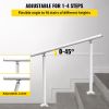 1.Adjustable for 1-4 Steps: Product Size (W x H): 47.6" x 35.8"/121 x 91 cm; Distance Between Vertical Bars: 31.5"/80 cm. Due to the 0-45° adjustable angle, our outdoor railing fits your 1 to 4 steps. It is perfect for helping people keep balance when walking up and down the stairs in the rain or winter.